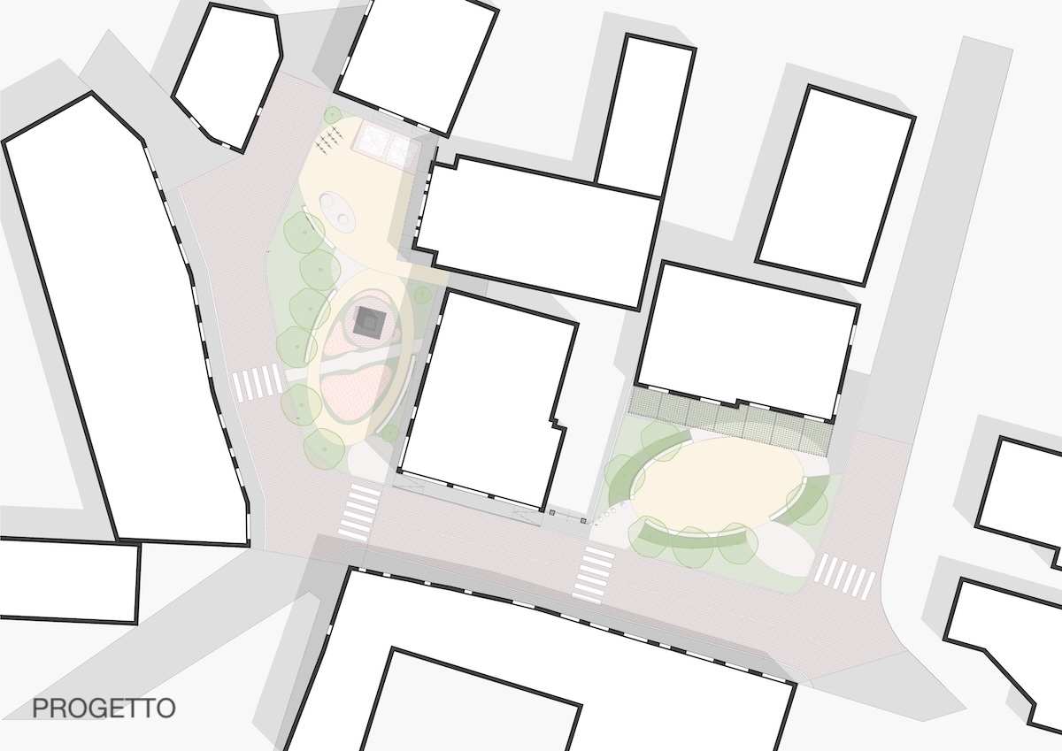 Progetto di riqualificazione del paesaggio e dello spazio pubblico per due piazze nel cuore di Saltrio, Varese.