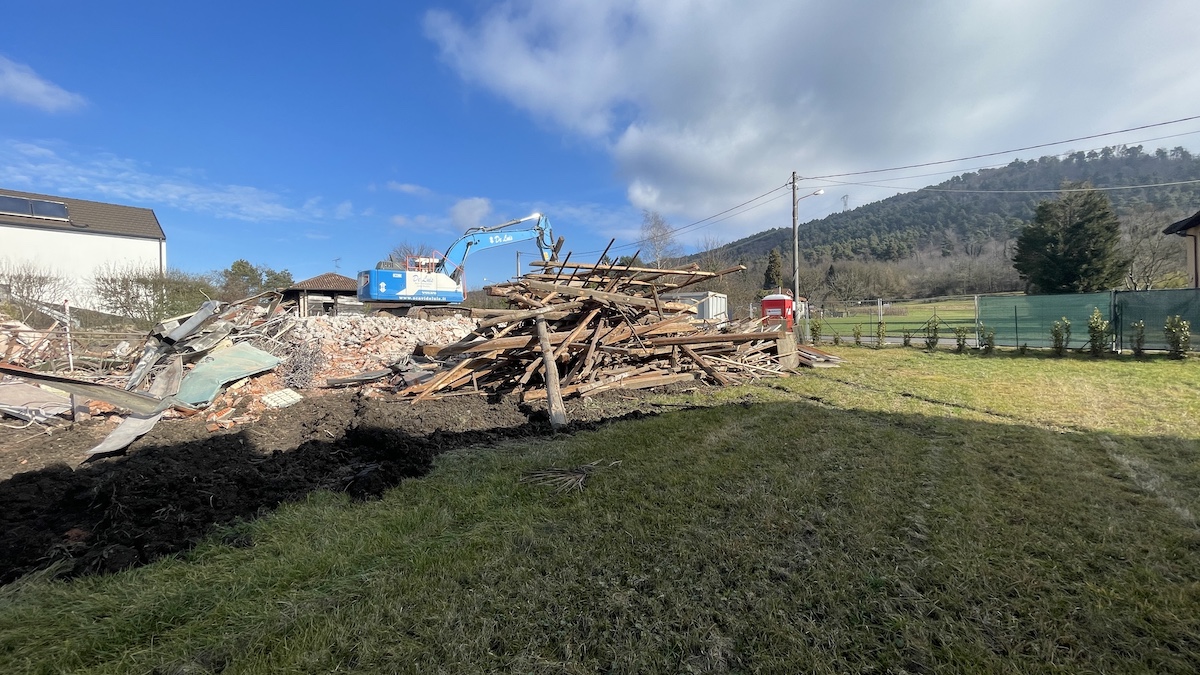 La prima tappa del viaggio è stata la demolizione dell’edificio esistente, affidata all’esperienza e competenza dell’Impresa Scavi De Luis. E’ un’attività delicata perchè è necessario separare attentamente i vari materiali per poterli destinare alle discariche in modo adeguato (ci sono normative stringenti in materia): le macerie, il legname, le parti metalliche…